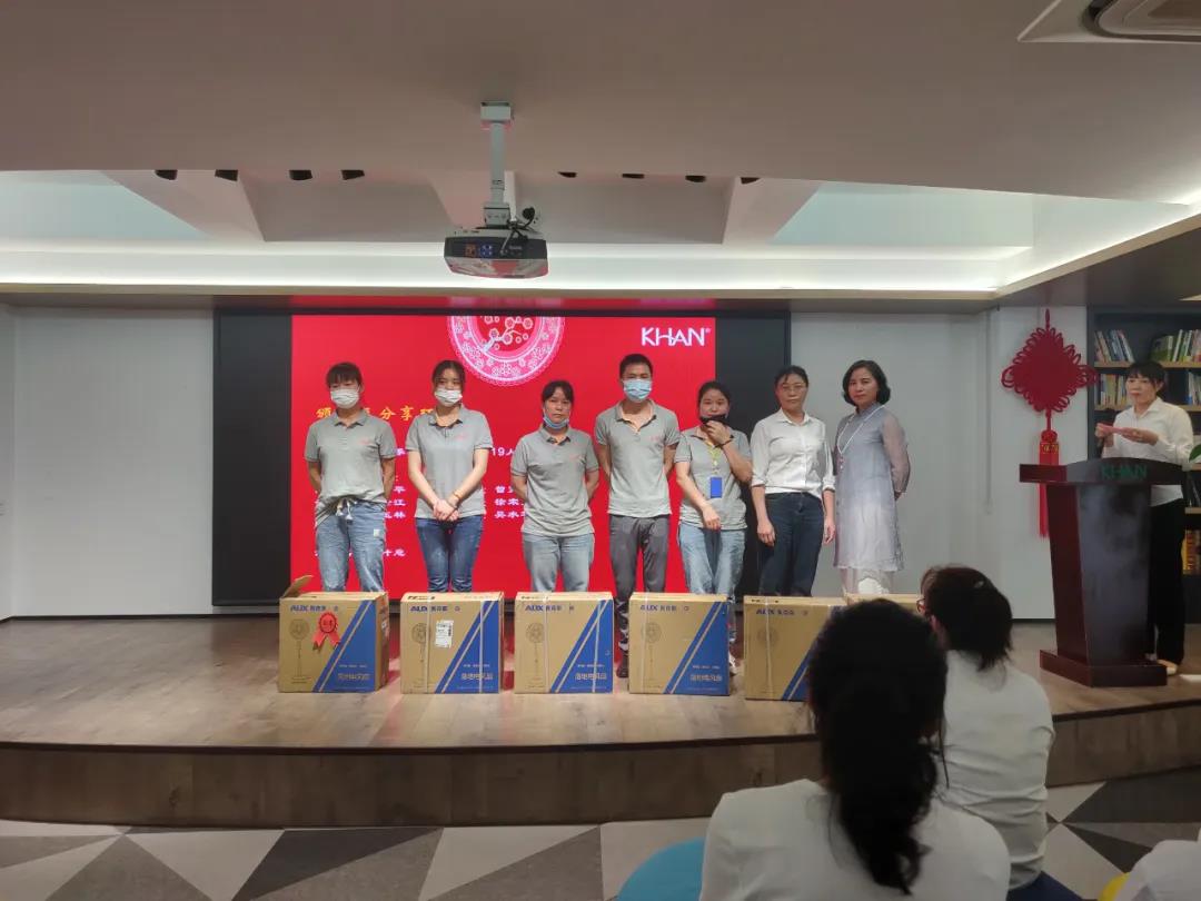 這次的積分獎品多種多樣、非常豐厚:空調被、電風(fēng)扇、收納盒、抱枕、飲料、食用油等,獎品拿到手軟,獲獎伙伴的臉上充滿(mǎn)了笑容,臺下的伙伴們也在暗暗加油:下次也要風(fēng)光上臺領(lǐng)獎。