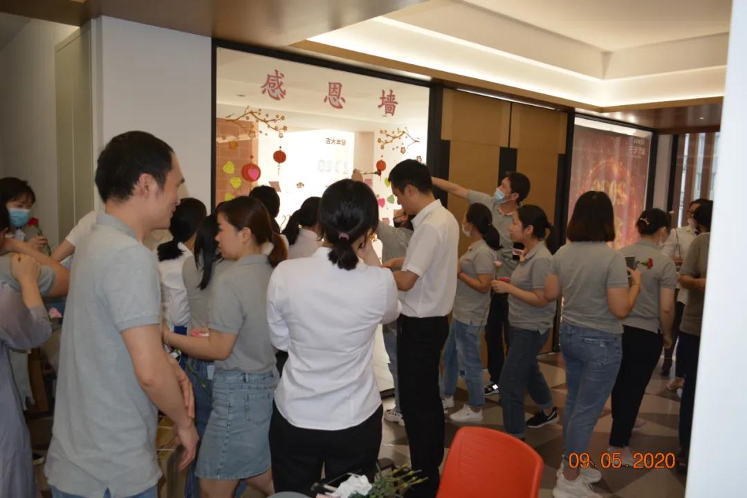 當《感恩的心》響起時(shí),大家的情緒慢慢地平靜下來(lái),主持人磁性的嗓音再次響起:讓我們學(xué)會(huì )感恩,懂得感恩,擁抱我們的家人,擁抱我們的同事吧!