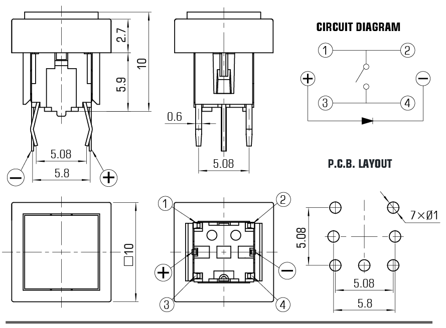 注:1、推薦工作電流5~10mA
